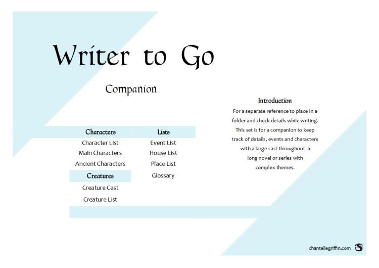 These are my writing templates used for writing a novella and quadrilogy. While some are specific to fantasy, most templates are universal for writing.